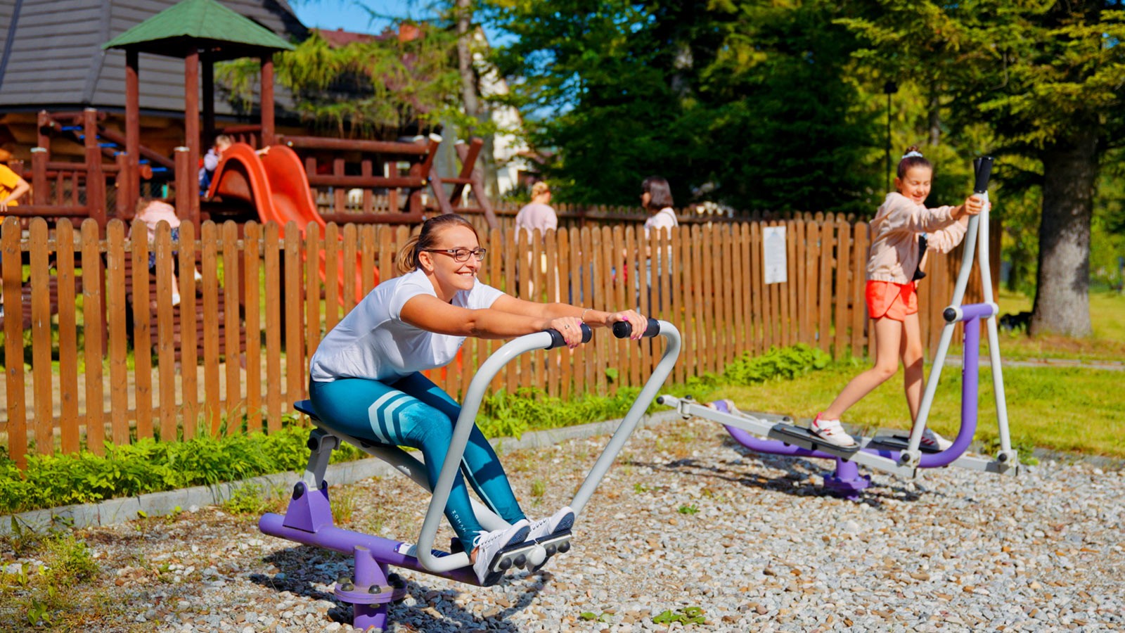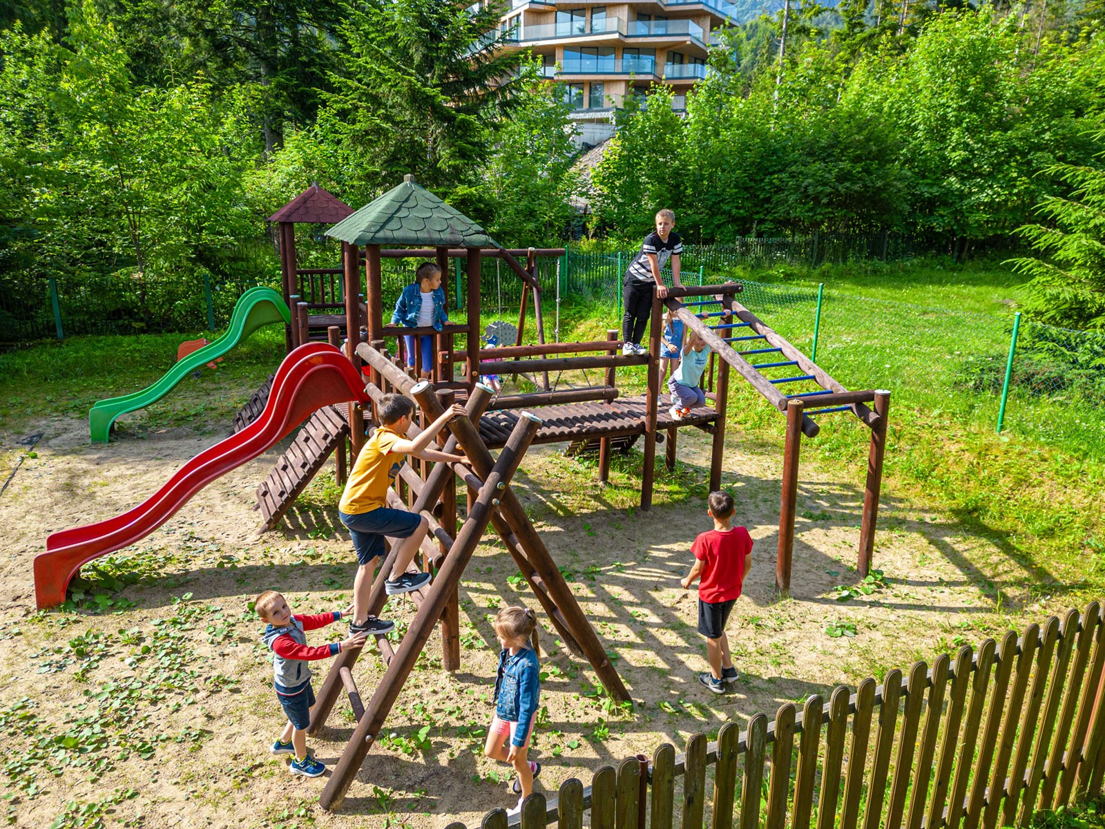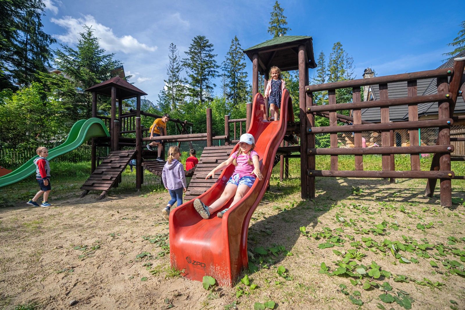Zewnętrzna Strefa Rodzinna, którą tworzy kompleks urządzeń zlokalizowanych w ogrodzie, daje możliwość wspólnej zabawy, jak również ćwiczeń fizycznych. Świeże górskie powietrze, Dolnego Regla Tatr, napływające z Doliny Białego – ścisłego rezerwatu przyrody – jest atutem dodatkowym. Specyficzny mikroklimat doskonale wpływa na drogi oddechowe.