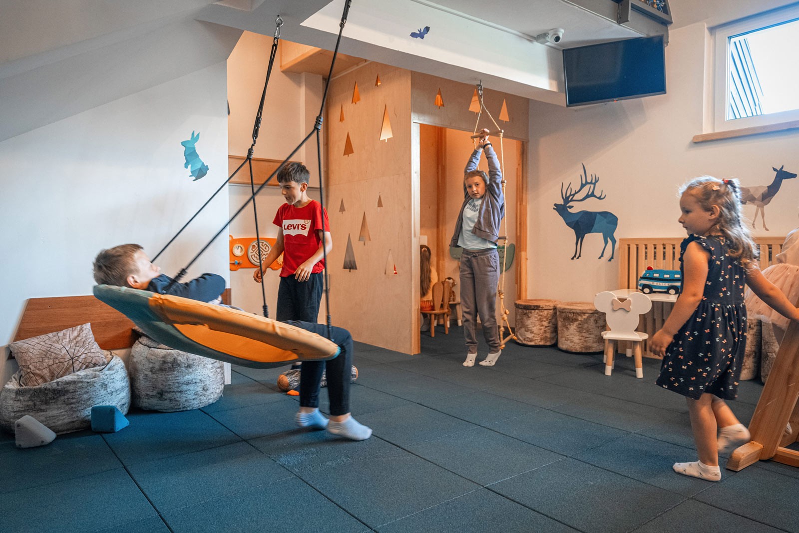 Wypoczynek w gronie najbliższych jest wyjątkowym doświadczeniem. Sprzyja budowaniu relacji i wzmacnianiu więzi. Strefa rodzinna to miejsce, w którym każdy może znaleźć coś dla siebie. Najmłodsi mogą spędzać czas rozwijając swe zdolności w Sali Zabaw, która mieści się w Pensjonacie Biały Potok. Wystrój i urządzenia w sposób kreatywny pozwalają zdobywać nowe umiejętności. To atrakcyjna propozycja nie tylko w deszczowe i pochmurne dni.